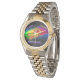 The watch is bright and shiny. It feels strong and durable. It is very appealing and attractive. The printed image appears clear. It is a perfect reminder for me to "Be Present" everywhere I go.