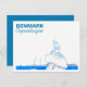 Simple, elegant Copenhagen Denmark Little Mermaid drawing art blue postcard.