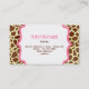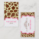 Un carte de visite à la mode comportant un arrière - plan d'impression de girafe sur l'avant et le dos. Cadres roses. Personnalisez l'avant avec votre nom et titre à l'intérieur de cadre en bas. Personlize le dos avec votre information à l'intérieur de cadre au centre. Recherchez d'autres articles d'impression de girafe chez Paperie de Jill.