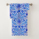 Ensemble de serviette dans un motif vintage de William Morris des jacinthes, tulipes et feuille, aux nuances du cobalt et du bleu cerulean, accentuées avec la marine foncée, sur un arrière - plan blanc