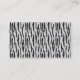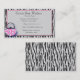 Cette carte à la mode d'impression de zèbre est couverte une copie noire et blanche de zèbre sur le dos de la carte. L'avant a un boîtier blanc encadré par rose au-dessus de la copie de zèbre avec un sac à main noir et blanc mignon dans le coin du fond gauche. Customisez cette carte à la mode pour vos achats, consultant en matière de mode, boutique ou autre personnelle des affaires connexes par mode.