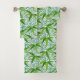 Ensemble de serviette dans une copie vintage de William Morris du feuille et des vrilles en bambou, numériquement augmentée et colorée dans un effet doux, texturisé, en pastel de crayon - nuances de vert de feuille, accentuées avec le vert turquoise profond, sur un arrière - plan blanc