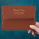 This boho dark terracotta wedding envelope features white peonies, hortensia, and copper leaves. This design is ideal for a modern elegant outdoor summer wedding. Find matching products and sets in Boho Terracotta Wedding Collection.