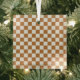 Copper and eggshell checkerboard pattern glass ornament