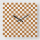 Copper and eggshell checkerboard pattern square wall clock