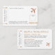 Trendy industrial copper and grey airplane ticket boarding pass place card or escort card with a custom message with shuttle or taxi information on the back, a fun place card display at a destination wedding or aviation travel theme reception for the globetrotter couple having an adventure theme wedding.