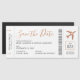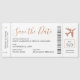 Elegant and modern boarding pass plane ticket save the date magnets with a copper / rust coloured airplane with a heart centre logo, designed for travel theme and destination weddings and cepebrations. Personalize your fun and unique magnetic travel theme save the dates for your wedding abroad however you like! *MINI VERSION IS AVAILABLE IN OUR SAVE THE DATE MAGNET COLLECTION BY PAPER GRAPE DESTINATIONS.*