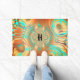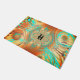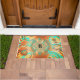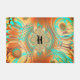 A very unique abstract pattern doormat in warm shades of brown, copper, and bronze with aqua as an accent.