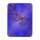 A flutter of sapphire, copper, and white fractals in the shape of butterflies dance across a royal blue background, overlaid with copper framing and sparkling bright blue gems.