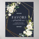 Modern and trendy, this wedding favours sign, features a faux copper geometric embellished with watercolor white floral and eucalyptus greenery floral arrangements, over a modern navy blue texture. Part of a matching collection. See full collection here: https://www.zazzle.com/collections/copper_geometric_white_blue_elegant_floral_wedding-119426320773611020 Copyright Elegant Invites, all rights reserved.