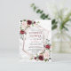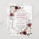 Modern and trendy, this couples shower postcard invitation design features a faux copper geometric embellished with watercolor eucalyptus greenery and burgundy and pink floral arrangements, over a faux white marble bark texture. Perfect for modern brides! Copyright Elegant Invites. All rights reserved.