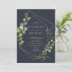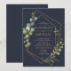 Modern and trendy, this wedding invitation design features a faux coppery gold geometric embellished with watercolor eucalyptus greenery, over a navy blue background. The couple's names and some wedding details are in a matching coppery gold colour, and the back of the card features the elegant the same navy blue background. Thank you sooo much for supporting our small business, we really appreciate it!