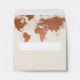 Elegant copper world map response or rsvp envelope with a printed mailing address and airplane design. Fonts and text colour can be changed to match your destination wedding, beach wedding, travel, journey or "around the world" theme party invitations and save the dates. Copper is a printed effect, not real foil. Visit the Custom Paper Works Zazzle designer shop for coordinating items and more sizes and colour variations.