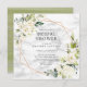Beautiful and elegant, this modern copper rose gold marble white floral square bridal shower invitation features a coppery rose gold faux foil geometric, adorned with gorgeous hand painted watercolor florals and greenery in shades of white and cream, on a white marble background. Personalized in elegant grey typography. The back of the card features a green hand painted watercolor texture. Copyright Elegant Invites, all rights reserved.