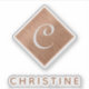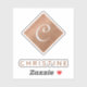 A white monogram written in a handwriting script inside a faux copper square; under it, there is the name, written in small copper-like brown caps.