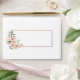 Create the perfect wedding invitation set with this pretty, elegant envelope design, featuring peach pink watercolor roses and flowers, on the flap and on the front! To finish it off, a faux copper rose gold border around the address box. Part of an invitation suite. Copyright Elegant Invites, all rights reserved.