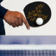 Copper Phoenix Rises on Black Ping Pong Paddle