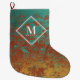 Copper Turquoise Metallic Texture Monogram Initial Large Christmas Stocking