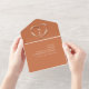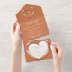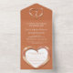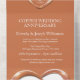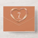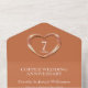 Copper wedding anniversary party event with one photo holder, detachable RSVP, and no envelopes required invitation design. Beautiful liquid copper effect in a heart shape printed graphics 7 years wedding anniversary invitations, personalize with your own wedding anniversary party details, a photo of the happy couple. The seventh wedding anniversary is traditionally associated with copper and the heart symbolizes love. Other matching items are available. Graphics and design by Sarah Trett for www.mylittleeden.com and www.mylittleedenweddings.com
