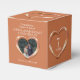 Copper 7th wedding Anniversary favour box. Beautiful liquid copper heart effect on a copper red brown colour with photo template copper Wedding Anniversary box packaging. Customize with your own name and wedding anniversary dates and a special photo. The 7th Anniversary year is traditionally associated with copper. Uniquely designed by Sarah Trett for www.mylittleeden.com on zazzle.