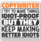 Funny Copywriter Sayings "Copywriter I Try To Make Things Idiot Proof But They Keep Making Better Idiots". Grab this Funny Copywriter design as a funny gifts for an awesome mom, dad or friend.