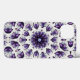Coque iphone de mandala à fleurs avec un motif kaléidoscopique créé à partir d'une aquarelle et d'un dessin à l'encre d'une fleur abstraite de lotus en bleu, violet et noir.