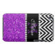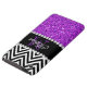 Parties scintillant POURPULAIRE MODERNE FILLE (EFFET IMPRIMÉ) AVEC MOTIF CHEVRON NOIR ET BLANC, MONOGRAMIT AVEC VOTRE NOM, VOTRE INITIAL OU MONOGRAMME SUR UNE BANDE NOIRE OU BANDE AVEC UNE FRONTIÈRE DE DIAMANTS BLANCS IMPRIMÉS. TENDANCE, CHIC, DESIGN CUTE COOL POUR ELLE, LA TENDSETTER, LA FASHIONISTA