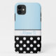 coque personnalisé iPhone 5 avec votre nom, et conçu avec des pois blancs sur le noir, et un dégradé bleu bébé.