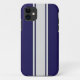 Le coque iPhone 5 présente un arrière - plan bleu fibre de carbone à bandes blanches.