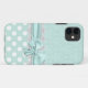 Joli coque vert menthe et blanc iPhone 5, avec un vert menthe sur le motif vert damask, sur le dessus, et un vert menthe avec un motif de pois blanc, sur le fond. Des graphiques d'un groupe de dentelle blanche et d'un ruban vert menthe et d'un arc traversent le milieu entre les deux arrière - plans. Customisez d'ajouter votre propre texte. Excellente façon d'être élégant et de protéger votre appareil électronique en même temps.