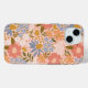 Belle pêche, rose vif et bleu foncé coque iphone à fleurs. Motif dessiné à la main par Amber Jones de Lily Girl Paper