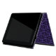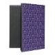 coque ipad avec un motif blanc unique de damassé d'un visage de sourire tourbillonnant de chat. Montré ici sur le pourpre mais disponible dans toute couleur d'arrière - plan de votre choix. Laissez la conception comme est ou employez-la comme arrière - plan d'amusement pour votre photo ou texte.