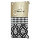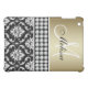 EFFET SOPHISTIQUÉ, ÉLÉGANT, MÉTALLIQUE D'OR, MOTIF NOIR ET BLANC DE DAMASSÉ QUE VOUS POUVEZ PERSONNALISER AVEC VOTRE NOM ET VOTRE MONOGRAMME OU VOTRE TEXTE. ELKE CLARKE© UNE PHOTO D'UNE BANDE DES DIAMANTS SONT IMPRIMÉES. UN GRAND CADEAU POUR ELLE.