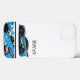 Ce coque iphone est affiché en couleur blanche avec une impression d'art auto race avec un nom d'exemple personnalisé. Customisez cet objet et changez le nom en votre nom. Image stock vecteezy.com