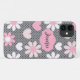 Ce coque personnalisé, rose, blanc et gris Coque-Mate, a des coeurs roses et blancs et des fleurs de marguerite sur un arrière - plan gris avec un motif pois noir !