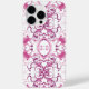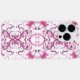 Ce boîtier de téléphone iPhone 14 pro max est montré dans une conception d'impression pivotante rose et blanc. Customisez cet objet ou achetez tel quel.