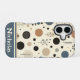 Une élégante motif aux cercles variés et aux motifs botaniques dans une palette apaisante de beige, marron, noir et bleu. Ce design minimaliste évoque une atmosphère boisée sereine.