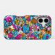 Upgrade your tech with some retro-future cool. This high-quality glossy case for the iPhone 16 case features a maximalist pattern of stylized neon robots, all-seeing eyes, stars, and hearts set against a vivid spray-paint background. A great gift for tech lovers and sci-fi fans.