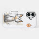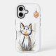 Un adorable chat gris et blanc souriant aux oreilles oranges assis parmi quelques plantes clairsemés regarde prudemment vers le haut un ornement de souris. C'est un cadeau parfait pour un amoureux des chats ! Les couleurs douces et l'expression douce pourraient faire fondre votre coeur!