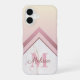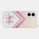 Cette belle coque iphone présente un design élégant avec un monogramme rose sur marbre géométrique et cadre or rose et un arrière - plan rose sombre.