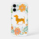Coque iPhone 16 Pastel Orange Dachshund with Flower – Custom Name