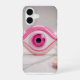 Coque iPhone 16 Pink Evil Eye Amulet on Marble Surface