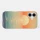 Minimalist illustration of the sun illuminating calm waves in a warm vintage style.
