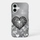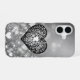 Un design de coeur sophistiqué avec des motifs de feuilles noires complexes.