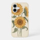 Retro illustration featuring large, stylized sunflowers in an earthy and warm palette.