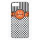 Ce coque personnalisé en noir et blanc Coque-Mate personnalisé iPhone 7 dispose d'un point pois amusant, motif arrière - plan rayé avec une bande d'impression orange et noir girafe et cercle pour ajouter votre nom, initiales, monogramme ou autre texte à. Ce nouveau coque moderne et branché fait une déclaration chic pour le jeune fashionista branché ! Si vous avez besoin d'aide, envoyez un courriel à niteowlstudio@gmail.com.