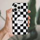 Coque iPhone à damiers carré noir et blanc rétro Monogramme
