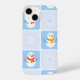 Coque iPhone À damiers hiver bonhomme de neige motif et flocons