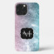 Coque iPhone Aqua bleu rose galaxie marine abstrait Monogramme
