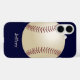 Ce coque pour l'iPhone (la plupart des modèles) est décoré d'un grand baseball sur un arrière - plan bleu foncé, et personnalisé avec nom ou autre texte. Il est facile de modifier ou de supprimer un texte d'exemple. Quel merveilleux complément pour votre nouvel iPhone. Magnifique cadeau pour joueurs de baseball ou de softball, fans ou entraîneurs. Cartes de voeux, papier d'emballage et autres cadeaux disponibles à www.zazzle.com/SocolikCardShop. Tous droits réservés © 2024 Alan & Marcia Socolik.